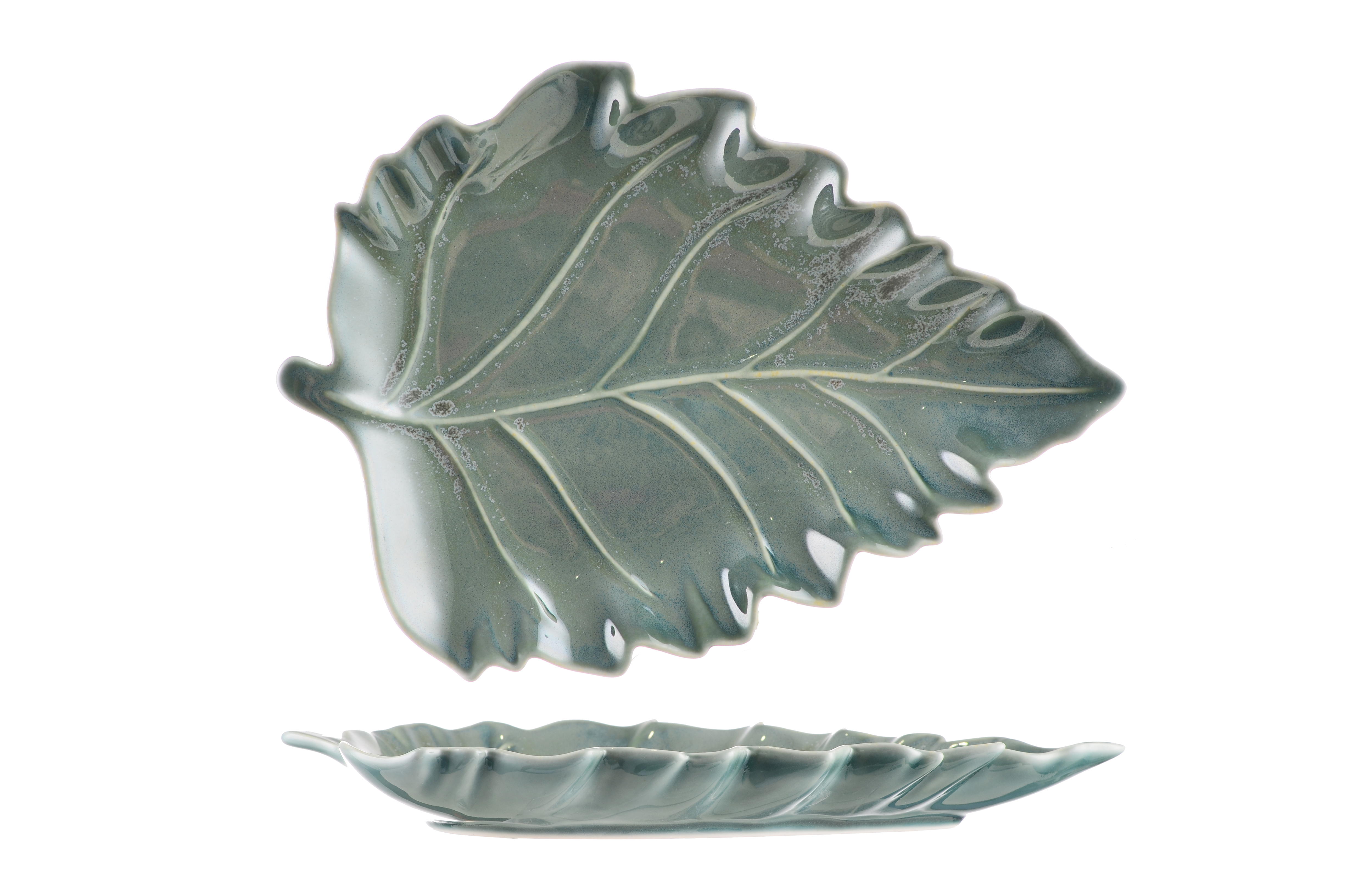 Immerse in nature-inspired tableware artistry, each piece mimics lifelike leaf textures, with organic vein patterns and contoured outlines. The deep teal glaze adds a lush, earthy charm, blending seamlessly with modern and rustic dining spaces.